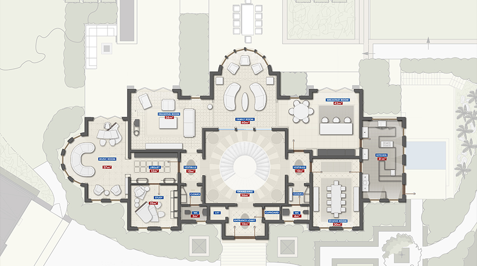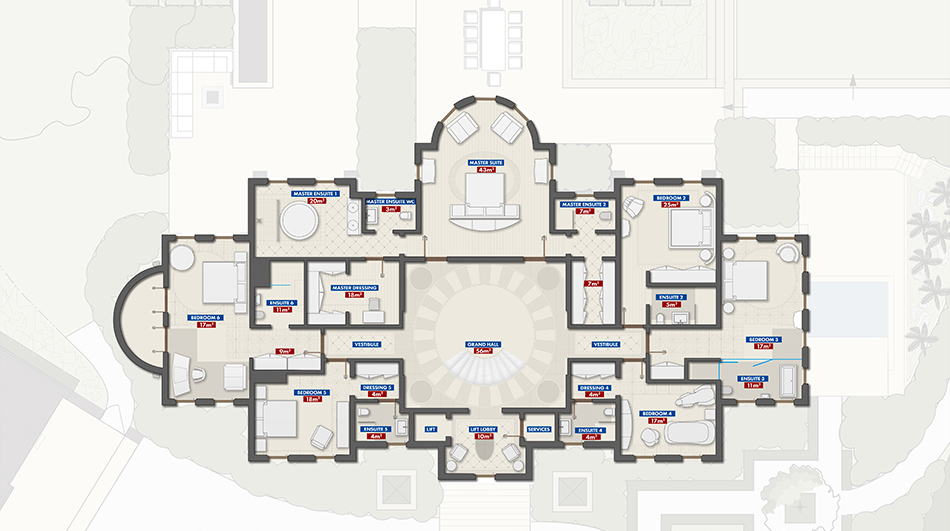 6 bedrooms, 7 bathrooms, 4 cloakrooms